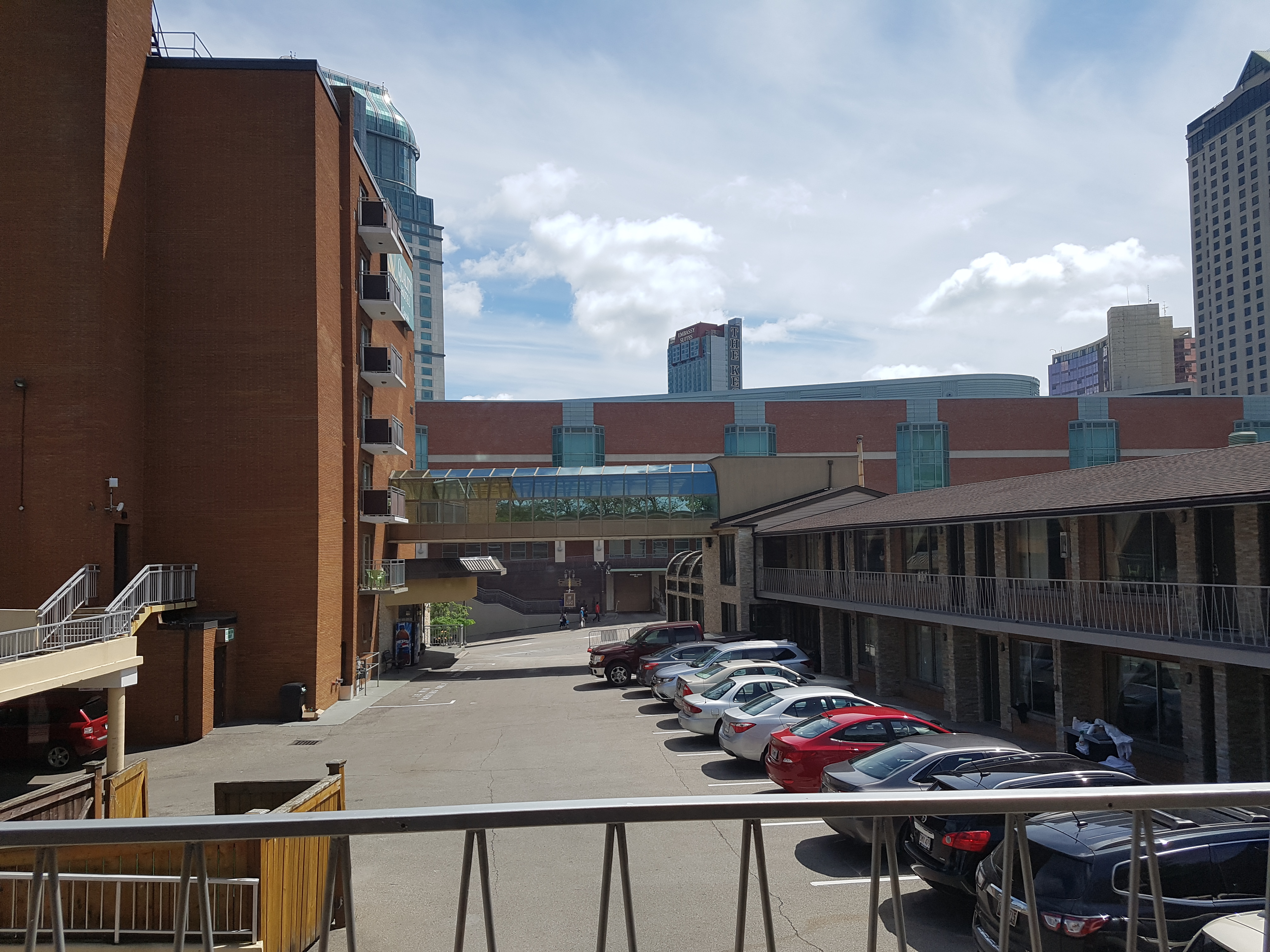 우리가 묵었던 방은 2층... 복도에서 바라본 모습. 맞은편에 카지노가 있는 호텔이 있었던 것으로 기억한다.