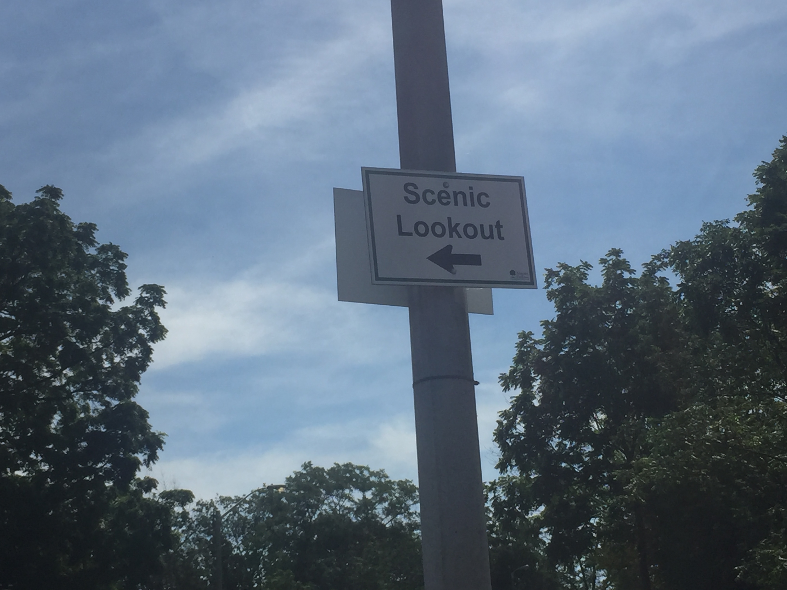 미국이나 캐다나 여행할 때 종종 봤던 표지판이 보였다. 아마도 경치를 구경하기 좋은 곳이란 의미인 것 같다. 바로 차를 세워서(간이 주차장이 다 마련되어 있다) 구경하고 간다.. 나이아가라 강줄기가 이어져서 보이는 풍경이 너무나 아름다웠다.