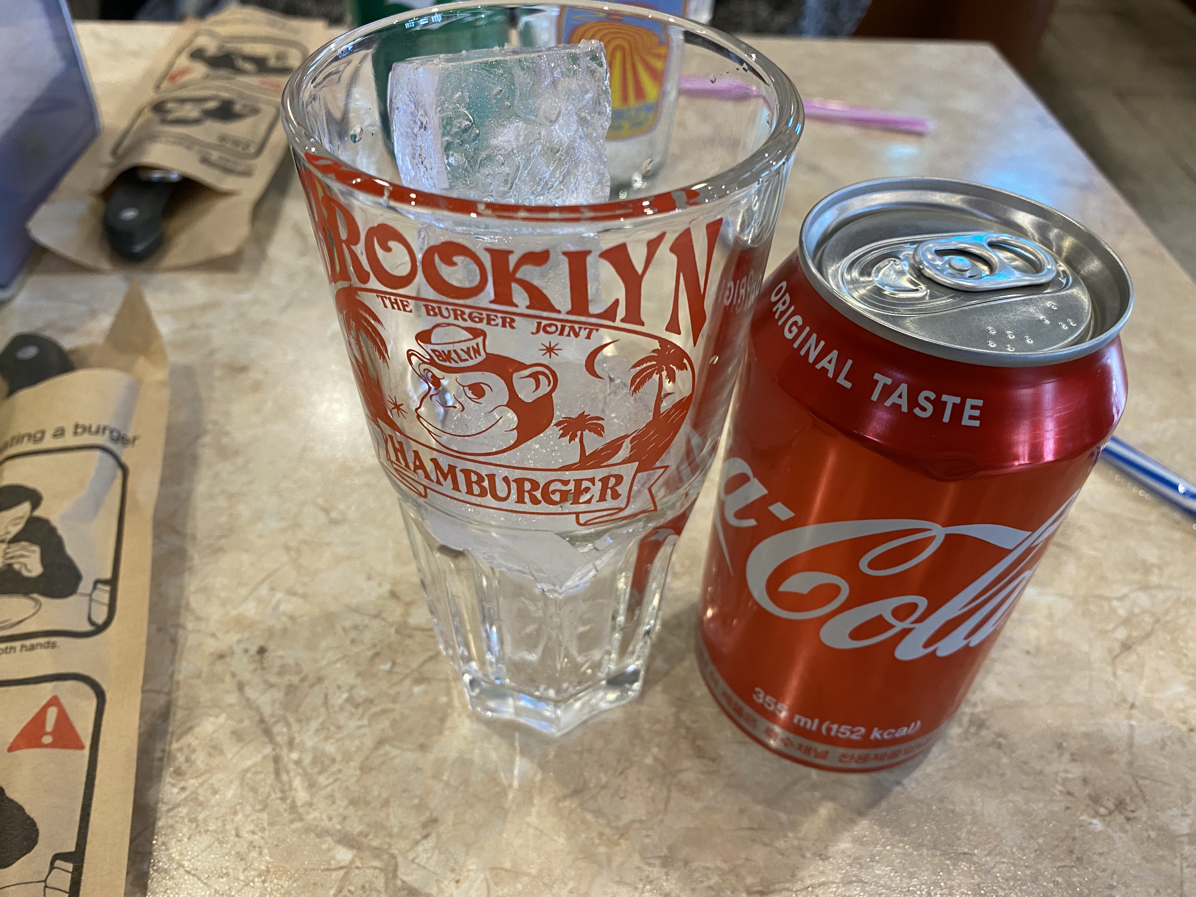 우리는 치즈버거 세트와, 브루클린 웍스 세트 하나씩 시켰다.