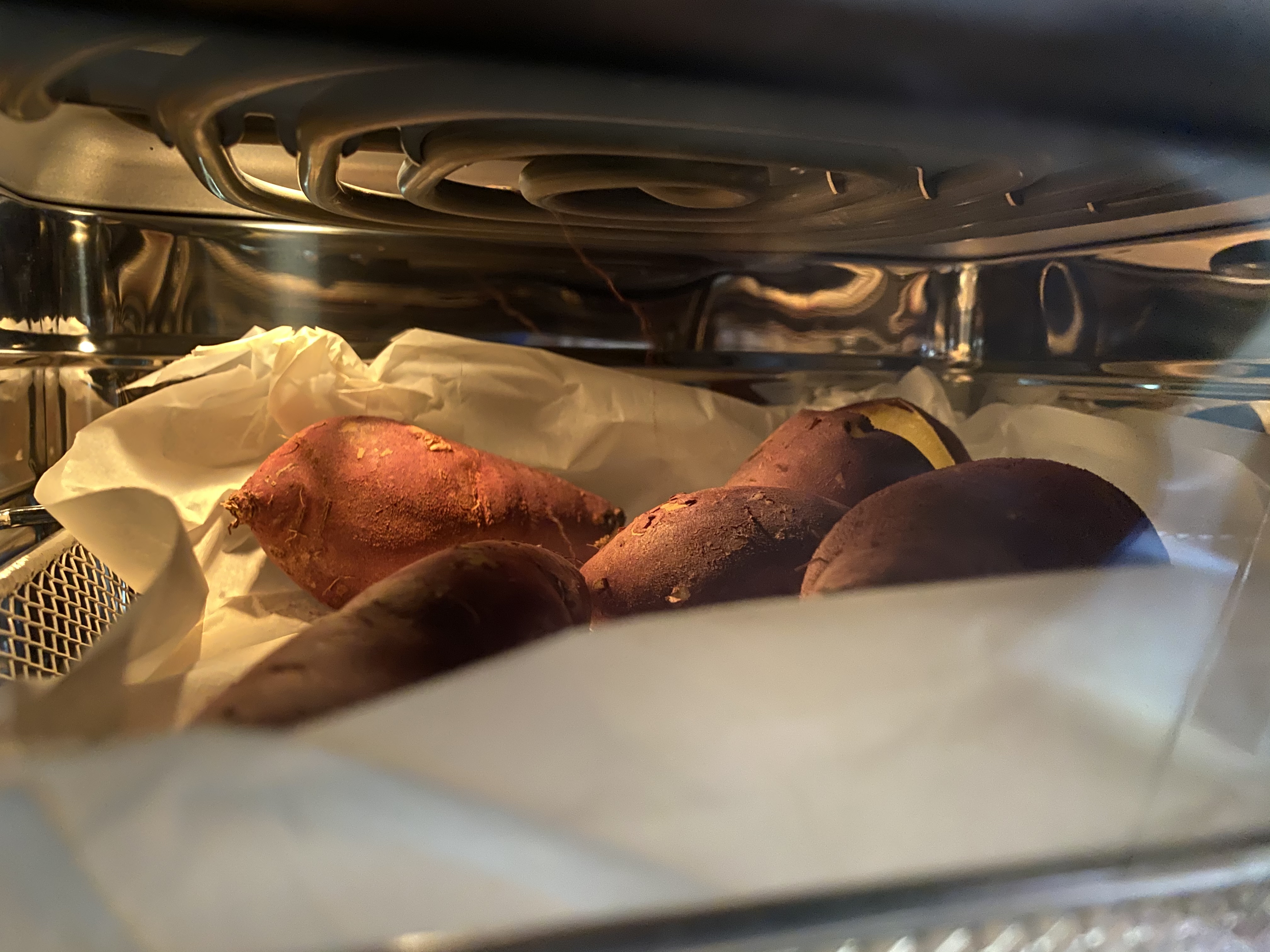 고구마 모드로 돌려본다.. 예열 시간도 있고, 또 히터가 위에만 있기 때문에 중간에 한번 뒤집어주는게 좋다.