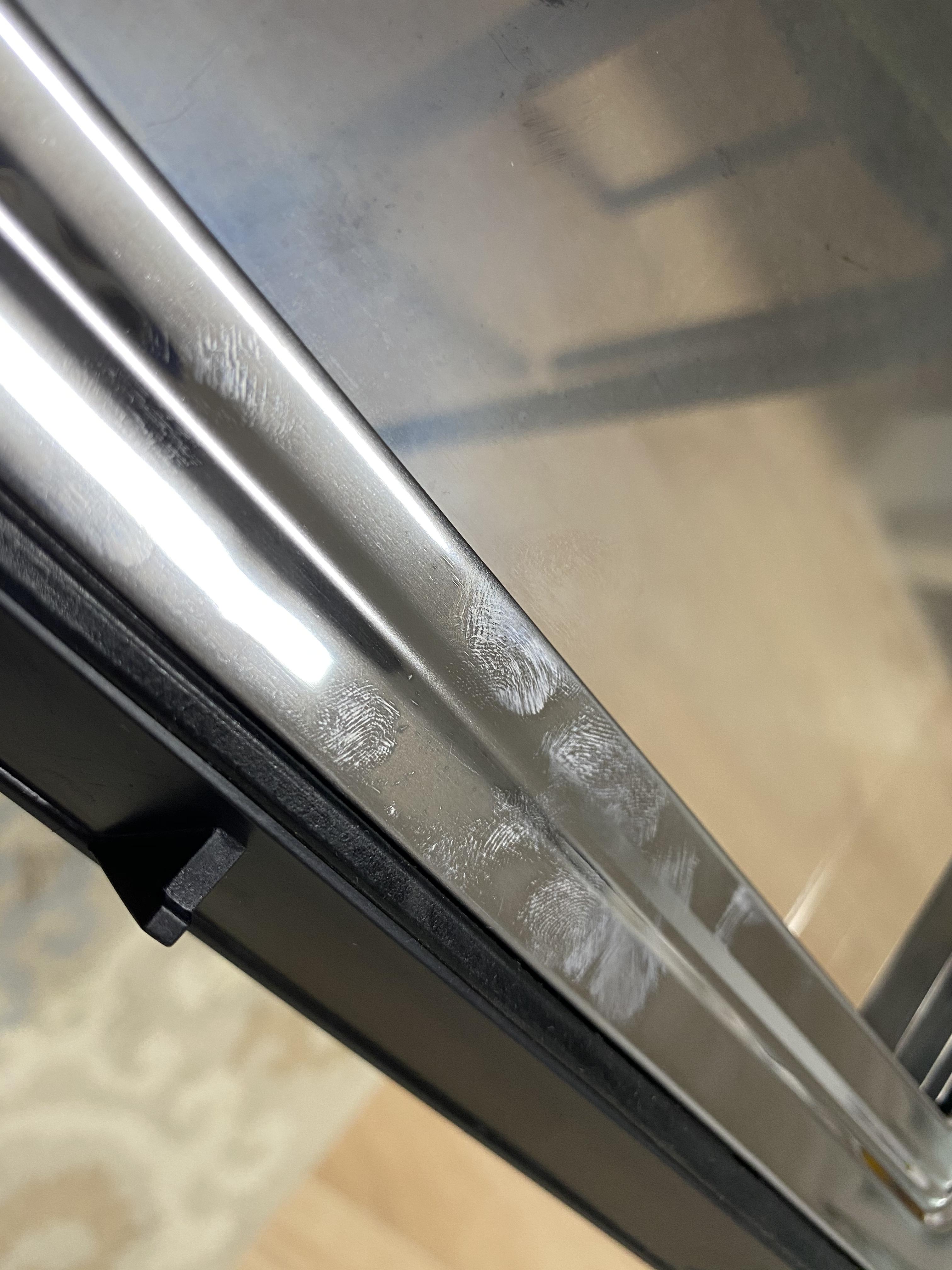 대표적으로 지문자국. 사용감이 있는 중고품은 아닌듯한데, 새상품에 이런 자국이 있다는 건 공정상 청결관가 제대로 되고 있지 않다는 것.