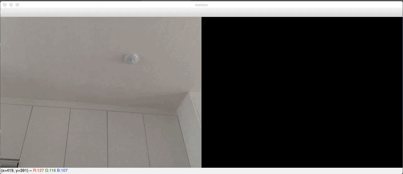 현재 불러온 프레임과, 이전 프레임 사이의 값을 비교합니다. 여기서 값이란 픽셀마다 가지고 있는 RGB, 또는 GRAY스케일의 값을 의미합니다. 즉, 픽셀마다의 차이값을 통해, 변했다면 움직임이 있는 것이고 변하지 않았다면 움직임이 없다고 판단하는 것입니다.