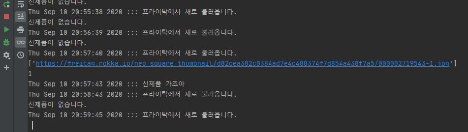 위 프로그램을 이용해서 처음에는 10분 단위로 보다가.. 하다보니 이게 어느 순간 여러 제품이 한번에 올라오는 것을 발견했다. 10분이면 간격이 너무 긴듯해서, 5분으로 줄였다가, 3분으로 줄였다가, 나중에는 에라모르겠다 1분 단위로 refresh를 하게 만들었다. 시간 간격을 고민했던 이유는, 너무 자주 접속하면 차단시키는 로직이 있을까봐였는데, 다행히 1분 단위까지도 그런 일은 발생하지 않고 정상적으로 작동하는 것을 확인할 수 있었다.