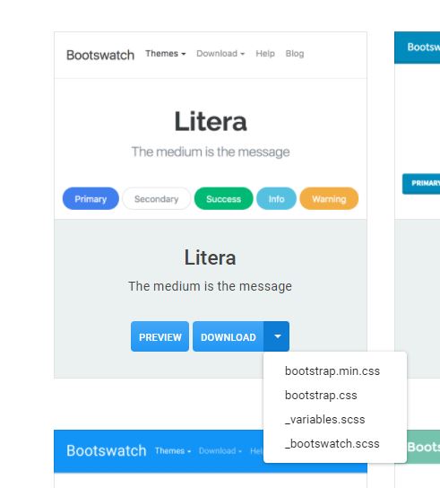 원하는 테마를 선택하고, bootstrap.min.css를 다운받습니다. 즉, 이렇게 다운 받은 css 파일을 프로젝트로 넣어서 적용시키는 원리입니다.