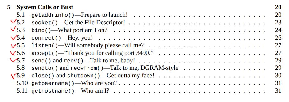 기본적인 네트워크 프로그래밍 방식에 대해서는 Beej's Guide to Network Programming을 많이 참조하는 것 같습니다. 홈페이지에 전문이 소개되어 있기도하고, 수 많은 사람들이 Beej의 가이드를 보라고 얘기합니다. 언젠간 저도 정독해보는 걸로...